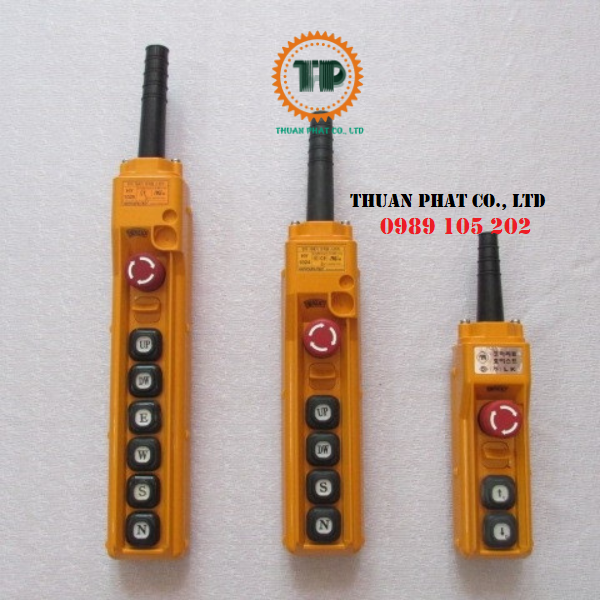 2/Nút điều khiển từ xa cầu trục dạng không dây được xem là một giải pháp tiên tiến cho việc điều khiển cầu trục hiệu quả. Sử dụng nút điều khiển này mang lại nhiều ưu điểm, trong đó có tính dễ dàng sử dụng và lắp đặt. Công ty Thuận Phát nhập nút điều khiển cầu trục dạng không dây từ Đài Loan, có các loại như sau: